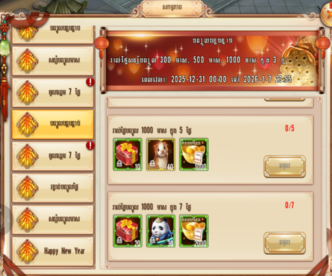 | រាល់ថ្ងៃបញ្ចូល 300 មាស ក្នុង 7 ថ្ងៃ | មាសចាក់សោ | 500 |