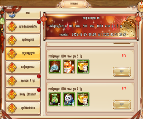 - ពេលវេលា៖ 00:00 25/12 - 23:55 31/12/2025 (UTC +7)