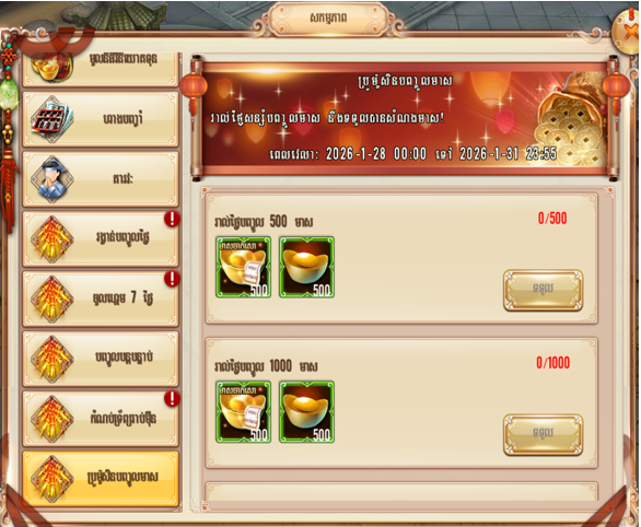 ចាប់ពីម៉ោង ០០៖០០ ថ្ងៃទី 29/01/2026 ដល់ម៉ោង ២៣៖៥៥ ថ្ងៃទី 31/01/2026
