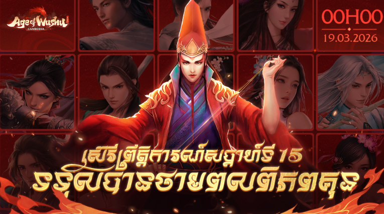 ជូនពរអ្នកក្លាហានមានអនុស្សាវរីយ៍ដក់ជាប់ក្នុងគម្ពីរធា Age of Wushu Mobile Cambodia កម្ដៅស្រាបុរាណឡើងវិញ ជាមួយបងប្អូនក្នុងក្រុមបក្ស ដើម្បីរក្សាសុបិន្តដ៏ស្រស់ស្អាត ក្នុងដំណើរត្រឡប់មកវិញដ៏រុងរឿង!