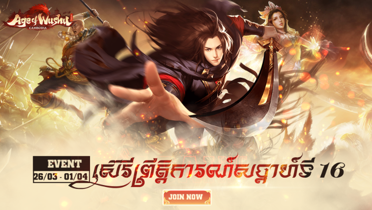 ជូនពរអ្នកក្លាហានមានអនុស្សាវរីយ៍ដក់ជាប់ក្នុងគម្ពីរធា Age of Wushu Mobile Cambodia  កម្ដៅស្រាបុរាណឡើងវិញ ជាមួយបងប្អូនក្នុងក្រុមបក្ស ដើម្បីរក្សាសុបិន្តដ៏ស្រស់ស្អាត ក្នុងដំណើរត្រឡប់មកវិញដ៏រុងរឿង!